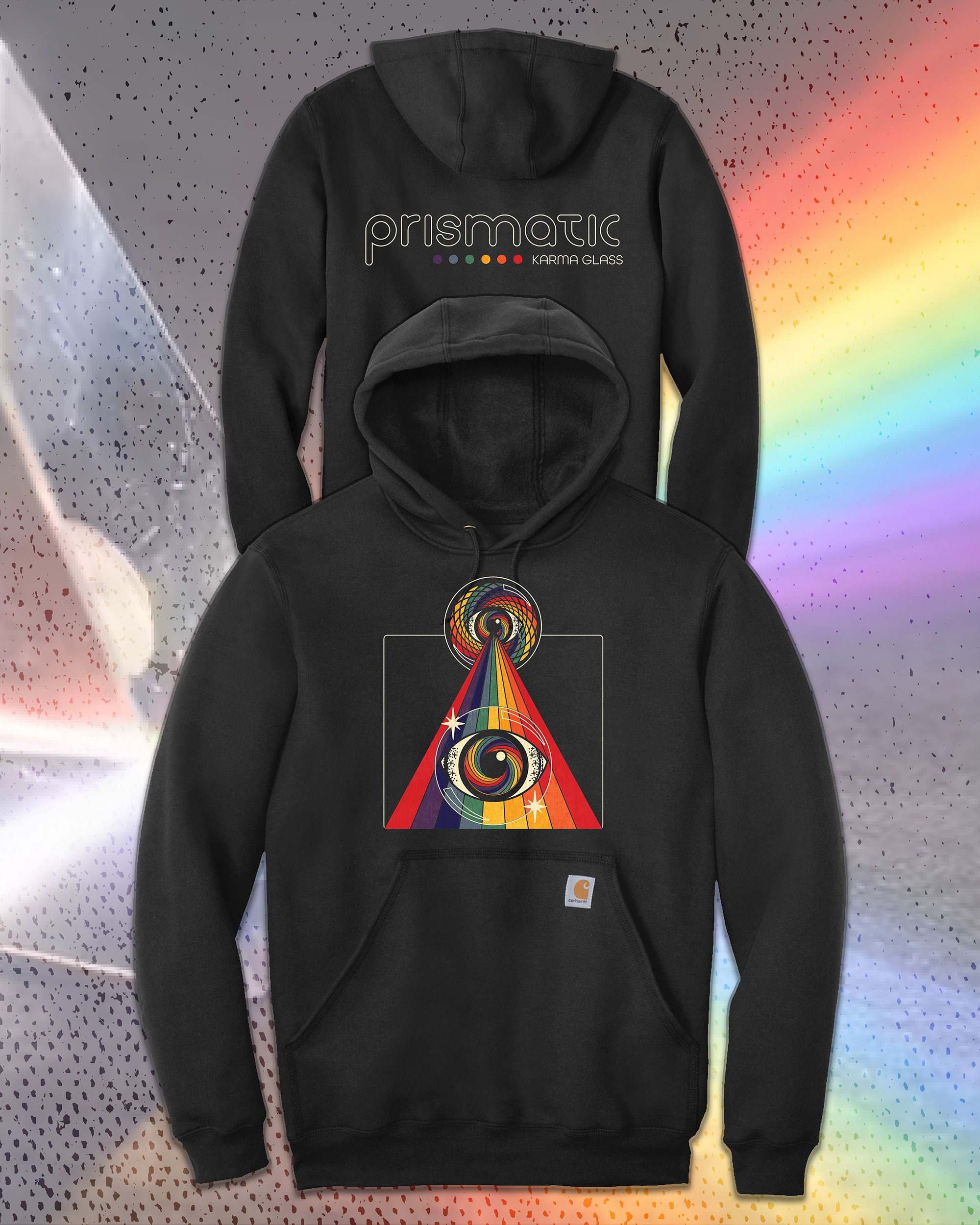 The new Prismatic Design printed up on a black Carhartt Hoodie. Get yours before the show and rock with the Karma Tribe.
